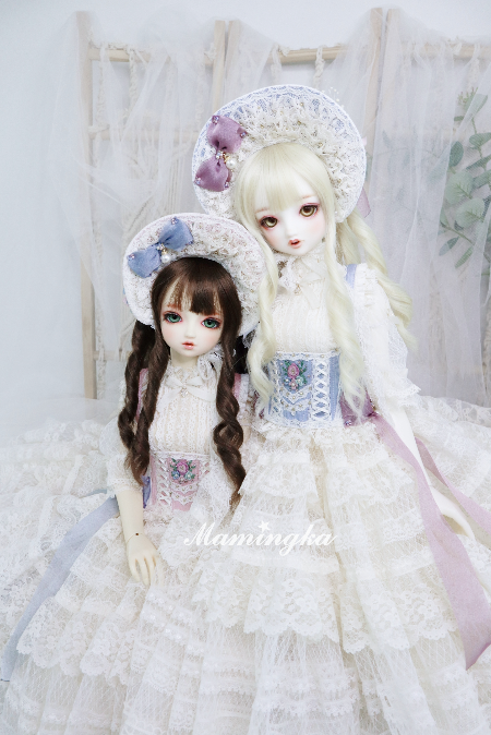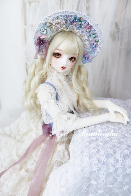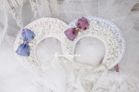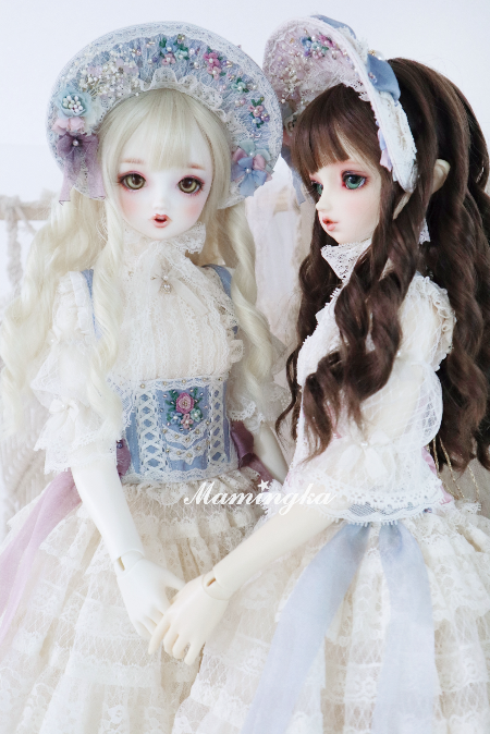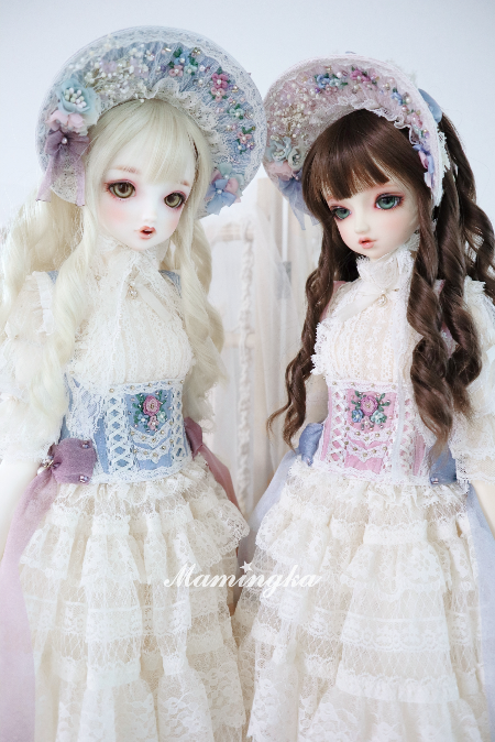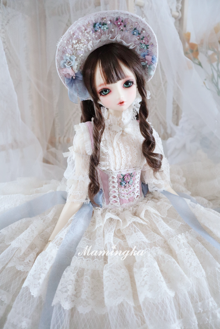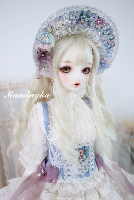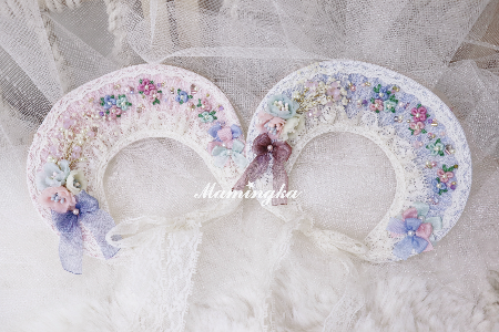 *The bonnet is also handcrafted with embroidery, beads, and corsages to match the corset, and can be worn on both sides for a glamorous or simple look.