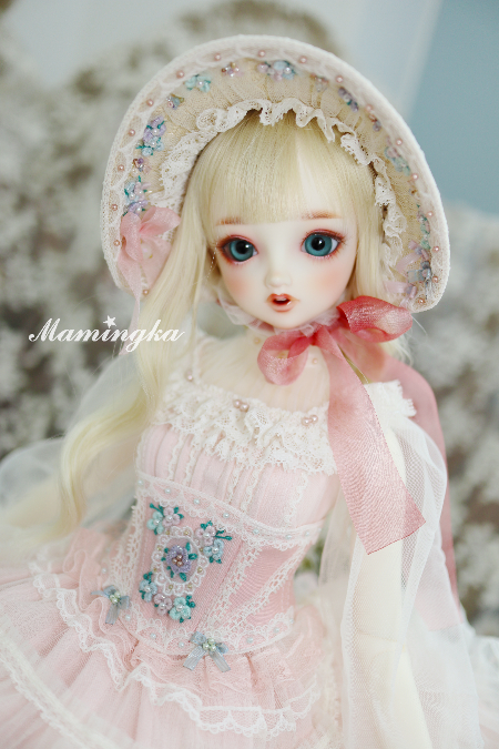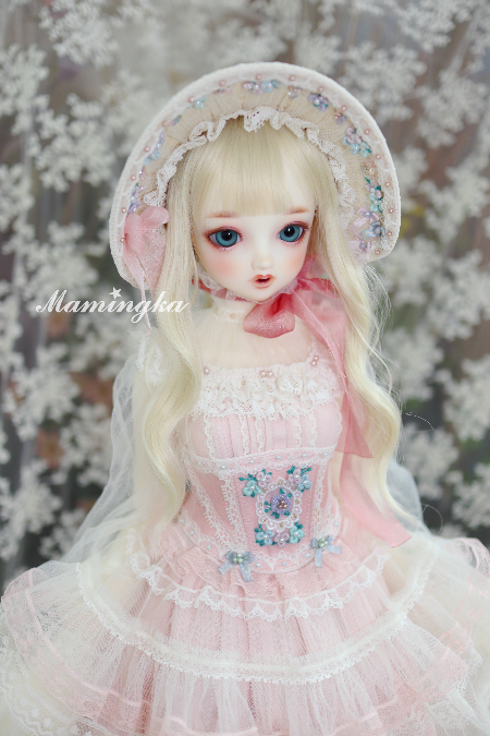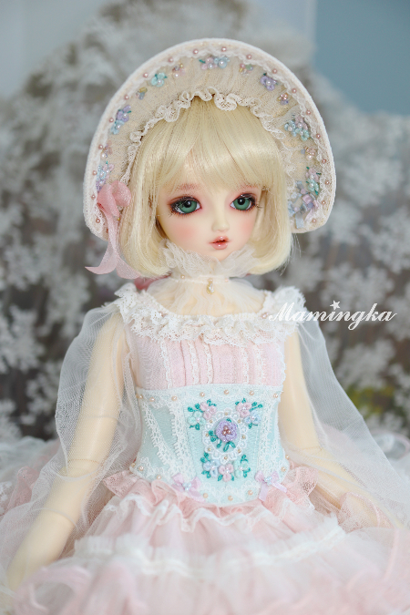 * ボンネット: 華やかなデザインでコルセットと調和するように、刺繍、ビーズを飾りしました。