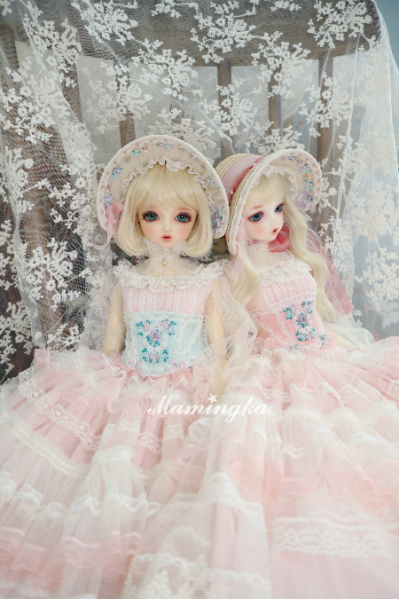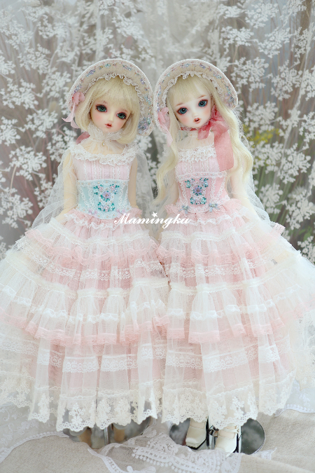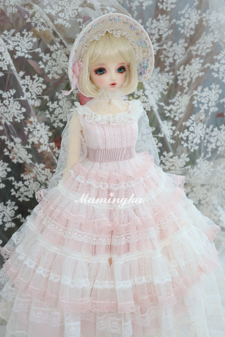 今回のドレスはパステルピンクをベースにしたドレスにレースがたっぷり入って花の刺繍コルセットがポイントのドレスです。