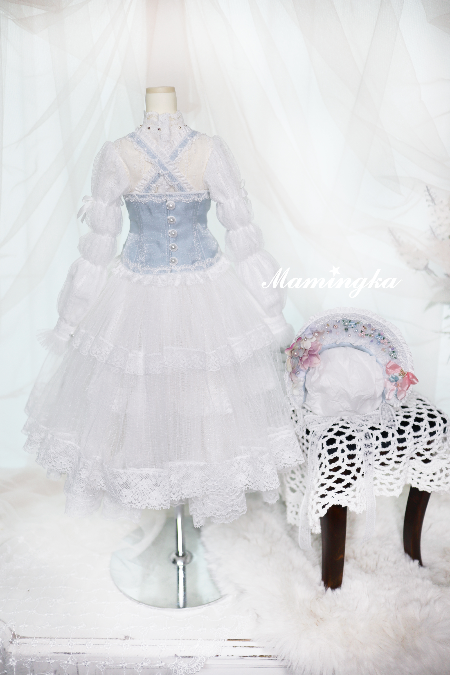 ◆ セット (4点) : ボンネット、ドレス、コルセット、パニエ