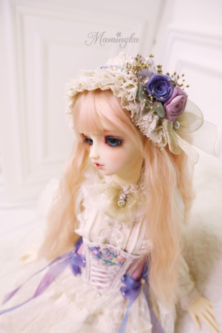 ※ ヘッドドレスの花はコルセットと統一感が出るように手作業で色合わせを行い作成致しました。